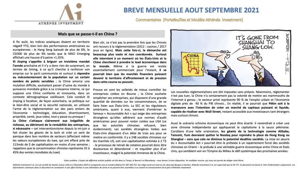 Mais que se passe-t-il en Chine ? A fin août, les indices asiatiques étaient en territoire négatif YTD, bien loin des performances américaines ou européennes.