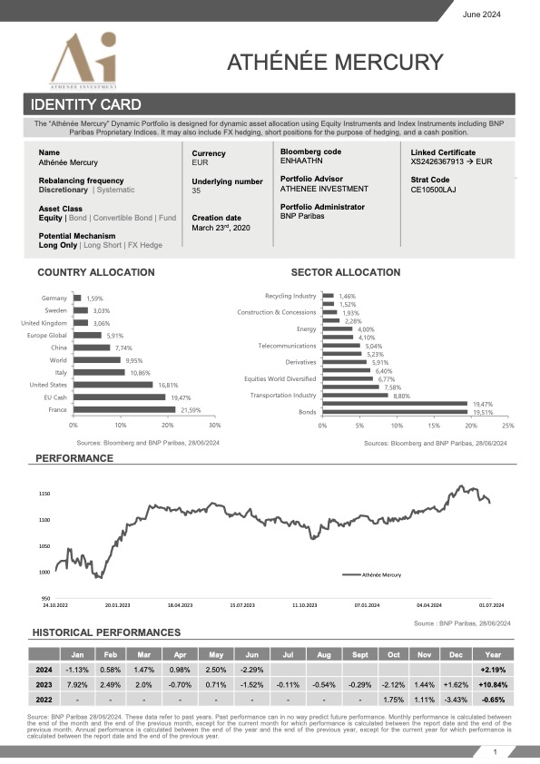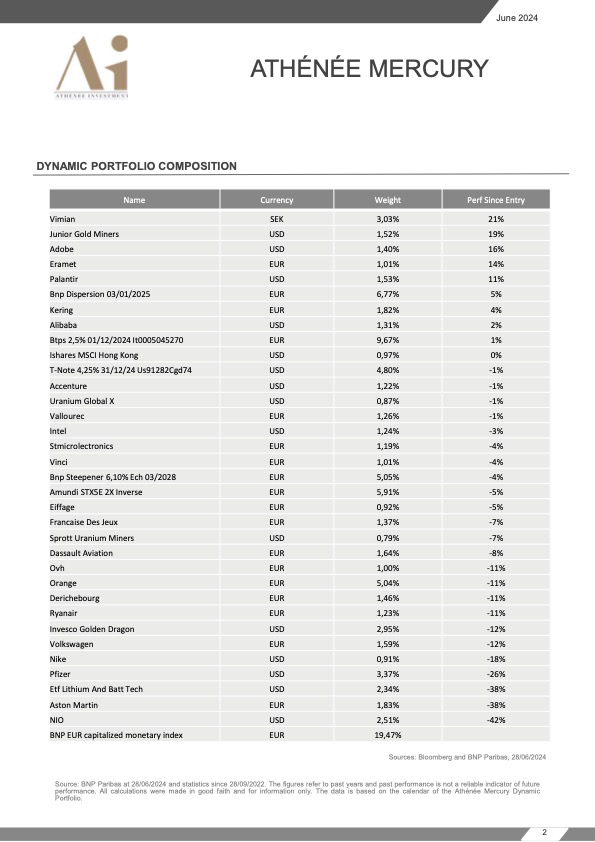 Retrouvez les commentaires sur la gestion de notre fond Mercury pour le mois de juin 2024 !