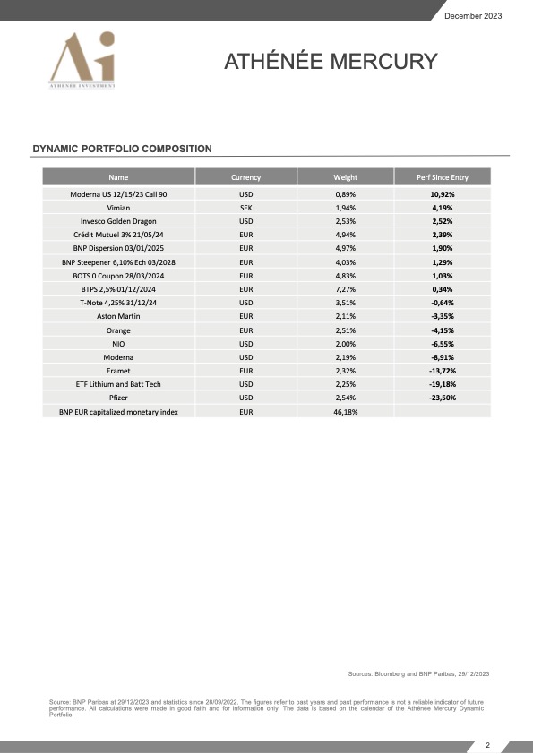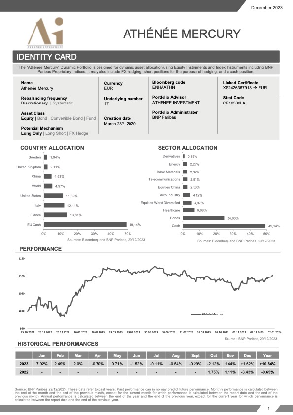 Retrouvez les commentaires sur la gestion de notre fond Mercury pour le mois de décembre 2023 !